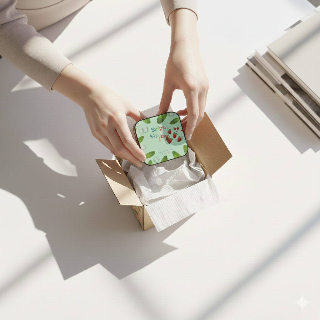 Strips. are crafted as a flexible, light oral film. A single sheet built with internal layers to dissolve evenly while delivering consistent performance.
